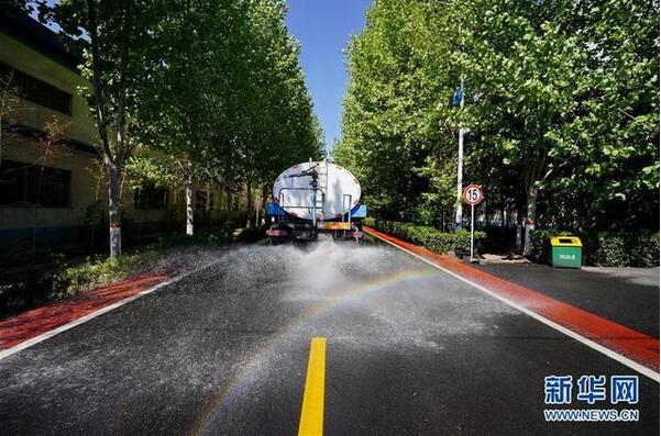 4月23日,灑水車在位于河北省沙河市的河北鑫利玻璃有限公司廠區(qū)內(nèi)灑水防塵。 2019年起,有“中國玻璃城”美譽(yù)的河北沙河市啟動(dòng)了“煙羽消白”工程,先后投入20億元對在產(chǎn)玻璃生產(chǎn)線實(shí)施超低排放改造,并結(jié)合提升廠區(qū)環(huán)境、優(yōu)化產(chǎn)能等措施,削減粉塵、二氧化硫、氮氧化物等污染物排放,推進(jìn)大氣污染治理。新華社記者 牟宇 攝