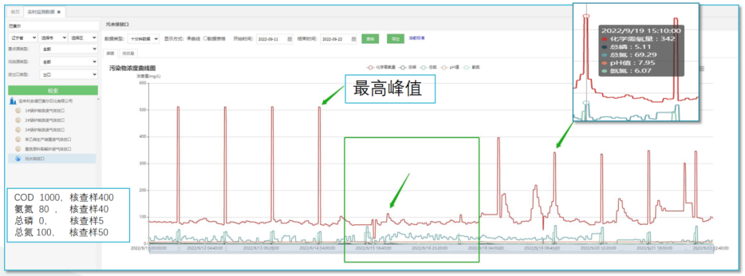 2022年9月26日,營口市生態環境局執法人員通過對自動在線監測平臺數據異常線索數據分析發現,營口某某洗水有限公司(一般排污單位)水污染源自動在線監控數據24小時一直存在數據相對穩定達標排放現象,但是根據排污許可顯示該單位夜間不生產,生產污水為間歇性排放,近乎“完美”的在線數據與企業生產活動情況不符,引起執法人員警覺,隨即對該單位進行現場核查。