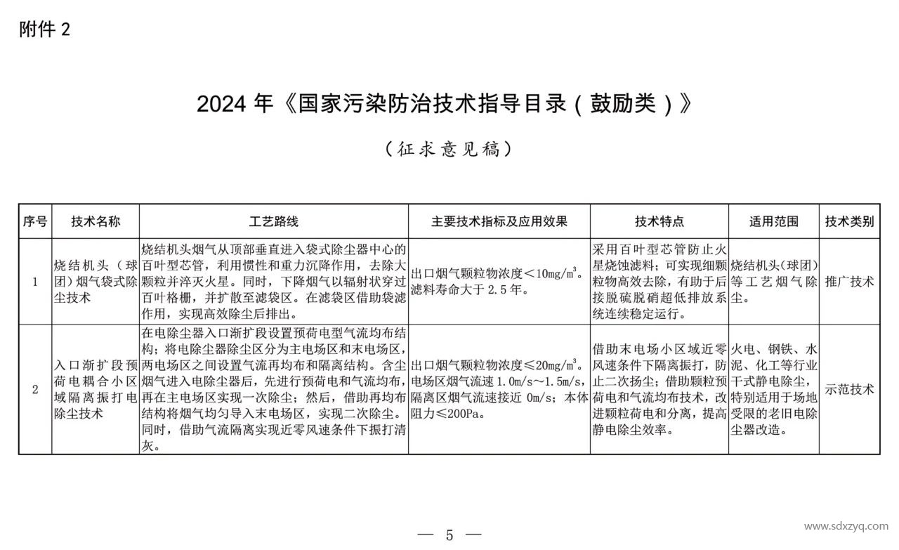 中國生態環境部發布《國家污染防治技術指導目錄(鼓勵類)》征求意見稿