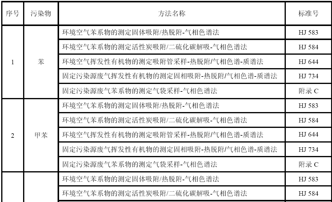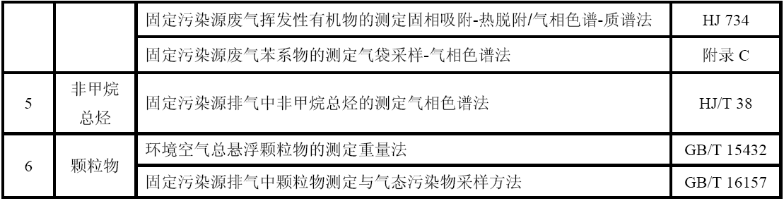 GB 16297 大氣污染物綜合排放標(biāo)準(zhǔn) GB 24409 汽車(chē)涂料中有害物質(zhì)限量 GB/T 15089 機(jī)動(dòng)車(chē)輛及掛車(chē)分類(lèi) GB/T15432 環(huán)境空氣總懸浮顆粒物的測(cè)定重量法 GB/T 16157 固定污染源排氣中顆粒物測(cè)定與氣態(tài)污染物采樣方法 HJ 583 環(huán)境空氣苯系物的測(cè)定固體吸附/熱脫附-氣相色譜法 HJ 584 環(huán)境空氣苯系物的測(cè)定活性炭吸附/二硫化碳解吸-氣相色譜法 HJ 644 環(huán)境空氣揮發(fā)性有機(jī)物的測(cè)定吸附管采樣-熱脫附/氣相色譜-質(zhì)譜法 HJ 732 固定污染源廢氣揮發(fā)性有機(jī)物的采樣氣袋法 HJ 734 固定污染源廢氣揮發(fā)性有機(jī)物的測(cè)定固相吸附-熱脫附/氣相色譜-質(zhì)譜法 HJ/T 38 固定污染源排氣中非甲烷總烴的測(cè)定氣相色譜法 HJ/T 55 大氣污染物無(wú)組織排放監(jiān)測(cè)技術(shù)導(dǎo)則 HJ/T 75 固定污染源煙氣排放連續(xù)監(jiān)測(cè)技術(shù)規(guī)范(試行) HJ/T 194 環(huán)境空氣質(zhì)量手工監(jiān)測(cè)技術(shù)規(guī)范 HJ/T 293 清潔生產(chǎn)標(biāo)準(zhǔn)汽車(chē)制造業(yè)(涂裝) HJ/T 397 固定源廢氣監(jiān)測(cè)技術(shù)規(guī)范 《建設(shè)項(xiàng)目環(huán)境保護(hù)設(shè)施竣工驗(yàn)收監(jiān)測(cè)技術(shù)要求(試行)》(環(huán)發(fā)(2000)38號(hào))