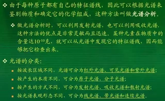 (6)靈敏度高:可利用光譜法進行痕量分析。目前,相對靈敏度可達到千萬分之一至十億分之一,絕對靈敏度可達10-8g~10-9g。