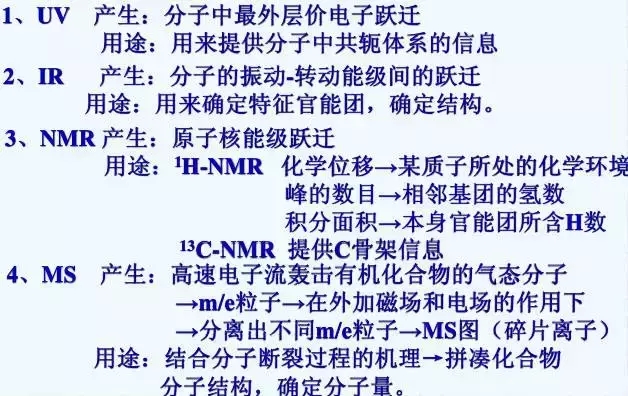 質譜:特征離子、重排、各化合物質譜特點(如:有無分子離子峰等)。