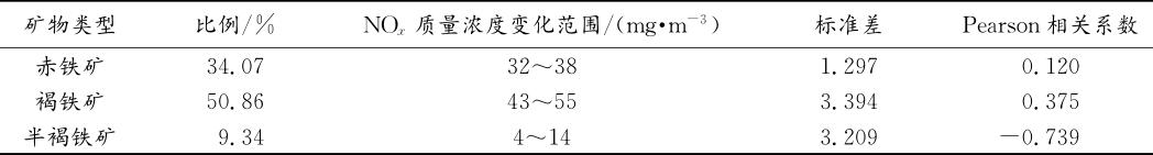 表1混勻礦中鐵礦粉的礦物類型與煙氣中NOx質量濃度的相關分析