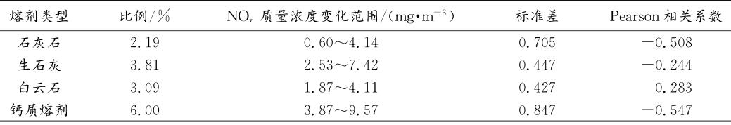 表2熔劑結構類型與NOx濃度的相關分析