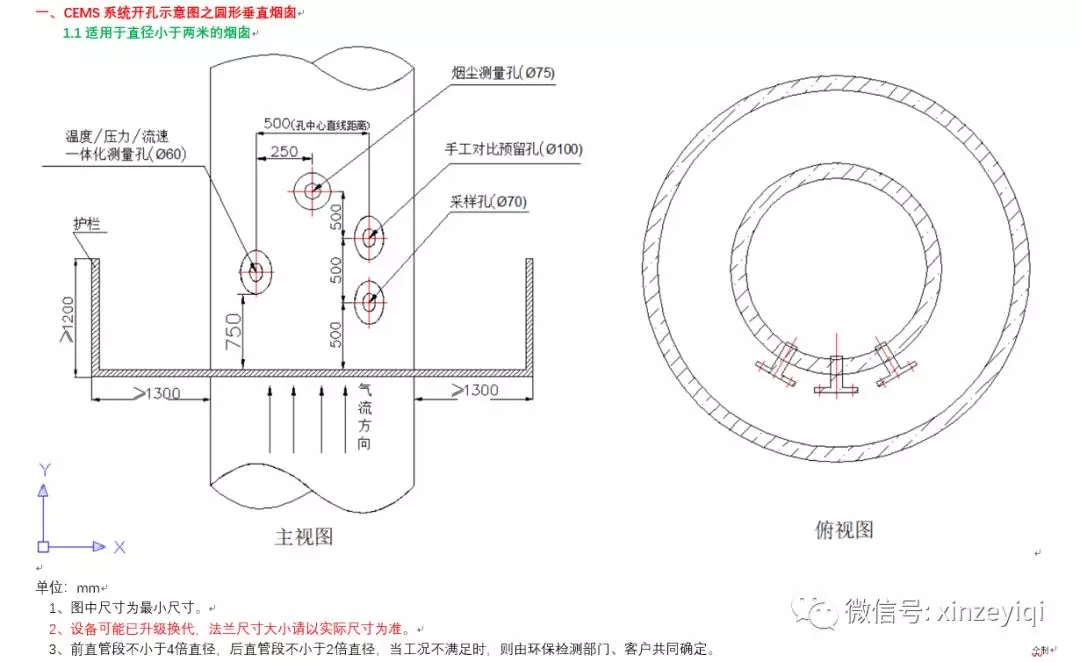 一、 煙氣在線監(jiān)測(cè)設(shè)備開孔示意圖之圓形垂直煙囪
