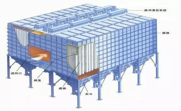 袋式除塵技術(shù)利用過濾原理,用纖維編織物制作的袋式過濾單元來捕捉含塵煙氣中的粉塵。堆積在濾袋表面的粉餅層在此反向加速度及反向穿透氣流的作用下,脫離濾袋面,落入灰斗。落入灰斗后的灰再經(jīng)輸灰系統(tǒng)外排。
