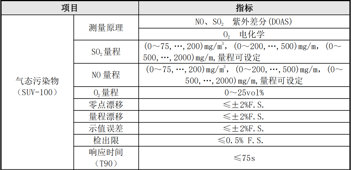 1.氣態污染物(SO2、NOX)技術指標